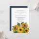 Elegant Navy Blue Sunflowers Einladung Hochzeit