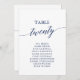 Elegant Navy Blue Tischnummer 20 Seating Chart