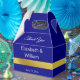 Elegantes, benutzerdefiniertes weißes Skript (gezeigt: Danke) ist an der Spitze dieser Marine und Gold Gefälligkeitsbox. Eine goldene Band aus Imitaten geht um die Kiste herum. Sie können die goldblaue und marineblaue Gefälligkeitsbox mit weißem Text für mit einem oder mehreren Namen und dem Veranstaltungsdatum personalisieren. Alle Texte können bearbeitet oder gelöscht werden. Gold Look ist ein künstlerisches Rendering (nicht Folie).