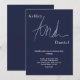 Dieses elegante marineblaue Hochzeitsangebot eignet sich perfekt für eine moderne Hochzeit, das schlichte Design zeichnet sich durch elegante weiße Kalligraphie auf blauem Hintergrund aus.
