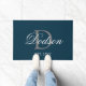 Elegant Navy Blue White Script Monogram Name Fußmatte