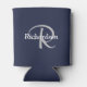 Genießen Sie diese elegante Dose Cooler mit Ihrem Namen über Ihr Monogramm in der modernen Schrift Typografie auf marineblau Hintergrund. Vorlagen für das Monogramm (in hellgrau), den Namen und das optionale "Family Wiedersehen"-Ereignis (in weiß).