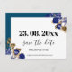 Elegant Navy Brown Minimalistisch Floral Save the Ankündigungspostkarte