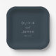 This elegant design features a sophisticated and minimalist style, perfect for a wedding celebration. The dark navy background creates an understated yet luxurious feel, complemented by the clean, modern typography that adds a touch of timeless elegance. Surrounding elements like delicate white flowers and gold accents enhance the romantic and refined atmosphere. Ideal for couples seeking a chic and classic look for their special day, this design seamlessly blends simplicity with sophistication, making it a versatile choice for various wedding themes.