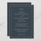 This elegant wedding invitation features a sophisticated and timeless design, with an understated color palette of deep navy and white. The typography is refined, combining classic serif fonts for the main text with a delicate script for added elegance. The layout is clean and balanced, ensuring that all details are presented clearly and gracefully. Perfect for couples seeking a modern yet traditional look, this invitation exudes a sense of warmth and formality, making it ideal for a memorable celebration. Customize it to reflect your special day and set the tone for a beautiful event.