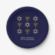 Elegante HAPPY HANUKKAH Papier Teller zeigen Imitate Gold und Silber STAR OF DAVID und MENORAH in einem gefliesten Muster vor einem reichen NAVY BLAUE Hintergrund. Text liest HAPPY HANUKKAH mit einem Platzhalter und ist KUNSTBAR, sodass Sie ihn PERSONALISIEREN können, indem Sie Ihren Namen oder einen anderen Text hinzufügen. Ideal für hanukkah Feiern, und mit der Anpassung kann für jeden jüdischen Anlass geeignet sein. Wählen Sie aus einer großen Auswahl an Hanukkah-Party-Artikeln von Berean Designs.