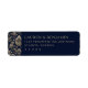 This return address label features an elegant design with a deep navy blue background framed by intricate gold and cream floral motifs, reminiscent of classic damask wallpaper. The layout is centered and balanced, showcasing customizable placeholder text in a sophisticated serif font that enhances readability against the dark backdrop. The overall style exudes luxury and formality, making it perfect for high-end events or announcements. Its timeless aesthetic conveys a mood of tradition and sophistication, ideal for those seeking a refined touch in their correspondence.