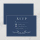Elegant Navy Leaf Line Art Wedding RSVP Card Response Card