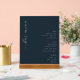 This elegant wedding bar menu features a minimalist design with a deep navy background and off-white cursive script that reads "bar menu." The layout is vertically oriented, showcasing sections for beer, wine, and spirits in clean, sans-serif typography. The color palette of navy and muted tones creates a sophisticated and modern look, perfect for a high-end event. With ample negative space and neatly aligned text, the design conveys an atmosphere of understated luxury and contemporary style, ideal for enhancing any wedding celebration.