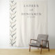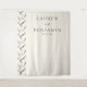 This wedding backdrop features a minimalist design with a clean, elegant aesthetic. The left side showcases an abstract pattern of intersecting diagonal lines in shades of gray and beige, creating a textured effect reminiscent of brush strokes or woven fabric. On the right, ample negative space highlights simplicity, with customizable names and date presented in classic serif typography that conveys formality and timelessness. The neutral color palette enhances the understated elegance, making it perfect for couples who appreciate subtlety and sophistication. Ideal for weddings, this backdrop sets a calm and graceful tone for your special day.