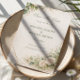 A soft and refined design featuring a textured neutral background complemented by delicate greenery and cream floral accents. The subtle botanical elements and muted tones create a calm, elegant, and timeless atmosphere. The balanced composition offers a graceful way to announce a special moment with a natural and sophisticated aesthetic.
