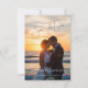Announce your upcoming nuptials with this stunning, full-bleed photo Save the Date card. Featuring a romantic sunset beach scene and delicate, airy "Save the Date" handwritten script, this design is perfect for destination or seaside weddings. The clean white serif typography at the bottom elegantly displays your names, date, and location without distracting from your favorite engagement photo. This modern, minimalist template is easy to customize, allowing your love story to take center stage