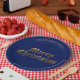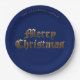 Alte englische Buchstaben Frohe Weihnachts Party Blue und Gold Paper Teller, mit Imitate Gold Old English Typografie und Ihrem Text.