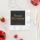 Alte englische Schrift Glücklich Weihnachten Party Napkins, mit Imitate Gold Old English Typografie und Ihrem Text auf schwarzem Hintergrund.