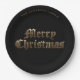 Alte englische Buchstaben frohe Weihnachts-Party Schwarz-Gold-Papier-Teller, mit Imitate Gold Old English Typografie und Ihrem Text.