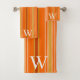 Elegant orang & brown stripes pattern monogram badhandtuch set