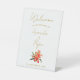 Elegantes Orange Oleander Blume Hochzeit Willkommensschild Pedestal. Ein wunderschönes Blumenempfangsschild mit einer atemberaubenden Darstellung der lebhaften Orangenoleanderblüten und üppigen grünen Blätter. Das warme Blumendesign erinnert an ein Gefühl von Romantik und natürlicher Schönheit, perfekt für Frühlings-, Sommer- oder tropische Hochzeiten.