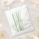Dieses Design besticht durch elegante grüne Bambusaufnahmen. Der Bambusgrün gibt der braunen Schrift Typografie Platz. Der Bambusschatten erzeugt einen anderen grünen Ton, der ihm eine Dimension verleiht. Elegantes asiatisches Gastgeschenk Hochzeit Taschendesign mit modernen Elementen. Auch die passenden Hochzeitseinladungen und andere Schreibwaren sind verfügbar.