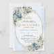 Ideal for classic, modern, garden, or elegant Quinceañera themes, this invitation combines delicate blue hues with warm gold details to achieve a look that feels both sophisticated and youthful. The greenery and eucalyptus bring freshness and balance, while the gold accents add just the right amount of sparkle for a meaningful 15th birthday celebration. Whether you are planning a formal Quinceañera, a traditional fiesta, or an intimate family gathering, this invitation sets a beautiful and memorable tone.