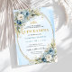 Elegant Pastel Blue Gold Eucalyptus Quinceañera Einladung