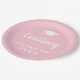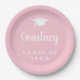 Moderne Papiertafel mit einem Graduierungsmütze über dem Namen des Absolventen in einer eleganten, dicken Schrift, zusammen mit dem Unterrichtsjahr in Weiß auf einem pastellrosa Hintergrund. Die Hintergrundfarbe kann in eine beliebige Farbe geändert werden. Diese einfachen und minimalen Teller sind perfekt für einen Absolventen und sind eine gute Möglichkeit, um eine persönliche Touch zu Ihrer Abschlussfeier hinzuzufügen.