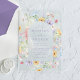 Invite guests to celebrate your wedding with this elegant pastel wildflower garden acrylic wedding invitation featuring a romantic watercolor floral arch frame in soft shades of purple, pink, yellow, blue, and white with airy greenery. The delicate wildflower design surrounds a graceful arch where your wedding details are displayed in refined lavender purple lettering, creating a timeless and sophisticated look. Printed on clear acrylic, the transparent background allows the watercolor florals to stand out beautifully while adding a modern and luxurious touch. Perfect for spring and summer weddings, garden ceremonies, and outdoor weddings, this pastel botanical design offers a unique and unforgettable way to share your wedding day with family and friends.