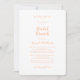 A refined Peach Bridal Brunch invitation featuring flowing calligraphy script paired with classic serif text. Soft peach lettering and delicate flourishes frame the crisp white center, creating a graceful and romantic presentation for celebrating the bride. The design feels timeless and polished, with a layout that keeps your event details clear and beautifully highlighted. Personalize with your venue, date, RSVP information, and registry details.