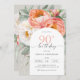 Elegant Peach Floral Feminine 90. Geburtstag Einladung