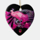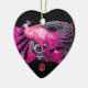 ELEGANT PEACOCK IN PINK FUCHSIA AMETHYST HERZ KERAMIK ORNAMENT