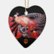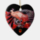ELEGANT PEACOCK IN RED RUBY HERZ KERAMIKORNAMENT