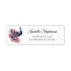 Eine wunderschöne Abbildung von Pfau mit hübschen rosa und blauen Schwanz Federn sitzt auf dem verlassen dieses Retress-Adressetikett und Sie können die moderne Typografie leicht mit Ihrem eigenen Namen und Kontaktinformationen anpassen.