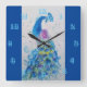Elegant Peacock Watercolor Bird Birds Navy Blue Quadratische Wanduhr