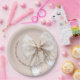 Dieses Stück ist ein zeitloses und elegantes Design mit einer weichen beigen Farbpalette und einem zarten Bogen als Mittelpunkt. Mit seinen perlmuttfarbenen Details besticht es durch seine Eleganz und Eleganz, die sich perfekt für ein stilvolles und herzliches Fest mit Babydusche eignet. Matching-Elemente verfügbar.