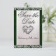 Elegant Pearl, Emerald Ribbon & Sparkle Save The Date