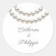 Weiße, elegante Hochzeitsticker mit silberner Perlenhalskette in Aquarell. Es ist sehr einfach, Ihre persönlichen Daten mit Details zu versehen.