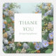 Bring the charm of a rustic garden to your packaging with this beautiful floral thank you sticker. The design features a stunning, realistic depiction of a lush wildflower meadow, overflowing with natural beauty. A vibrant mix of periwinkle blue, soft peach, light orange, and creamy white blossoms creates a full, romantic, and organic frame. This beautiful, rustic botanical arrangement, complete with fresh green leaves, is set against a pale, misty background. At the center, a crisp, modern white square provides a clean, sophisticated contrast and a perfect space for your message. These stickers are perfect for businesses that want to convey a natural, rustic charm, such as boutique florists, garden centers, artisan soap or candle makers, farm-to-table cafes, or wedding planners specializing in garden or boho themes. This versatile design can also be used to beautifully seal envelopes for garden party invitations, spring bridal showers, or as a charming accent on party favors and gift wrapping.