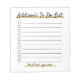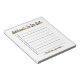 Bleibe produktiv mit diesem personalisierten Notizblock in Schwarz, Gold und Weiß. Das schlichte Design verfügt über zehn Zeilen mit Checkboxen und eignet sich ideal zum Abschreiben und behalt von wichtigen Aufgaben! Personalisieren Sie Ihren Namen oder Textauswahl unter den Zeilen oder verließ Sie ihn auf Wunsch leer. Sie können jedes Element des Designs ändern.
