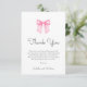 Elegant Pink Bow Girl Baby Shower Dankeskarte