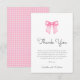 Express your gratitude with our Pink Watercolor Bow Thank You Card, designed to celebrate the arrival of your little one with elegance and modern charm. This beautifully crafted card features a delicate watercolor bow paired with sophisticated script, a simple, elegant, and classic aesthetic. Feminine touches and a coquette bow make it a perfect choice for a stylish "It's a Girl" baby shower. The minimal design also showcases a pretty soft pink gingham on the back.