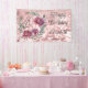 Elegant pink, mauve and burgundy carnations floral design "40th Birthday Party" design featuring a floral open-ended wreath of white-frosted carnations.
