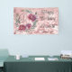Elegant pink, mauve and burgundy carnations floral design "60th Birthday Party" design featuring a floral open-ended wreath of white-frosted carnations.