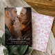 Celebrate your upcoming wedding with a romantic and timeless save the date card. The front highlights your vertical engagement photo with “Save the Date” displayed in flowing white calligraphy, paired with traditional serif lettering for your names, date, and location. On the back, a vibrant pink and white chinoiserie-inspired floral pattern adds a soft, feminine touch that feels classic yet inviting. This design is ideal for couples seeking an elegant save the date that blends romance with polished detail.