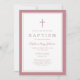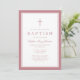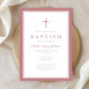 Elegant Pink Cross Baby Girl Baptism Einladung