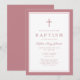 Elegant Pink Cross Baby Girl Baptism Invitation.