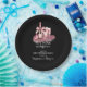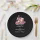 Celebrate a milestone in style with this elegant joint birthday party plate, perfect for both family and formal gatherings. Featuring a black background and a refined graphic of a pink champagne bottle tied with a bow alongside two glasses, this design radiates sophistication and warmth. The heartfelt script message “It's a double celebration” sets the tone for an evening full of appreciation and good company. All party details are neatly presented in a classic serif font, making them easy to read and customize.
