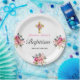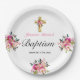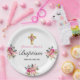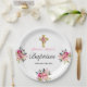 Elegant PInk Floral Gold Cross Taufen Pappteller