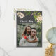 Hochzeitliches Foto Dankekarte zeigt ein elegantes botanisches Gartendesign mit rot-rosa Blume und Grün, die das Foto umrahmen. Die Dankeschön-Nachricht kann für eine handschriftliche Notiz angepasst oder gelöscht werden.