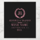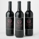 Elegantes, mit Monogramm Weinetikett. Rosa Lorbeerkranz mit einem anpassbaren Monogramm. Schwarz veränderbarer Hintergrund und anpassbare Textvorlage.