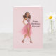 A stylish birthday card featuring a glamorous brunette in a flowing pink and silver dress with sparkling details and elegant accessories. Set against a soft pink background with “Happy Birthday, Princess!” text, this design is perfect for celebrating someone who loves a touch of glamour, confidence, and feeling extra special on her day.