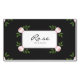 Display your brand with classic elegance using this beautiful magnetic business card. The design features a dramatic, solid black background that provides a stunning contrast for the delicate floral elements. Symmetrical arrangements of soft, dusty pink roses and fresh green leaves gracefully adorn the corners and the central frame. This romantic, botanical artwork provides a lovely border for the crisp, white classic-style text box, which is ready for your details. A fine, simple outer border completes this sophisticated and clean composition. This charming design is perfect for a boutique flower shop, a high-end bakery or patisserie, a beauty or skincare consultant, a lifestyle blogger, or a wedding photographer with a romantic aesthetic. This versatile design can also be adapted for elegant save-the-dates, bridal shower invitations, or as a sophisticated branding element for any chic business or event.